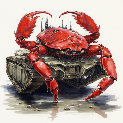 a heart shaped crab tank, army, metal slug, watercolors, ink, war