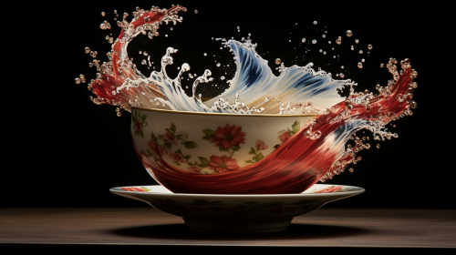 traditional japanese tea cups on old wooden table in japanes room , cinematic settings , moody , --s 150 --v 6.0
