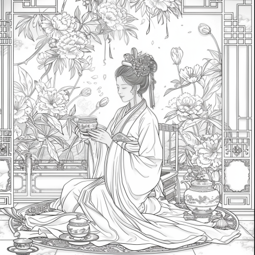 traditional japanese tea cups on old wooden table in japanes room , cinematic settings , moody , --s 150 --v 6.0