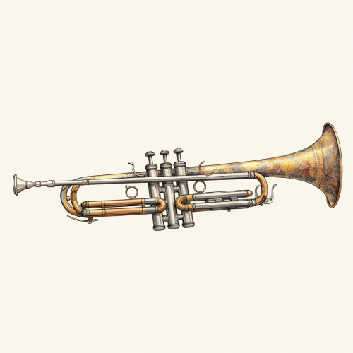 illustration in the mid centuryr childrens' book paper collage style of Christina Ronbinson. enthusiastic trumpet player . person of color. full body. strong cheerful colors. white background --v 6.0