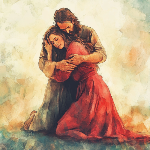 oil painting of Jesus, heavy brush strokes, ascending to heaven, in the artistic style of Rembrandt