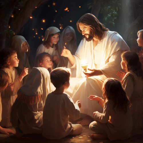 Oil painting of Jesus sitting on a sandy beach looking out over the ocean --ar 14:11