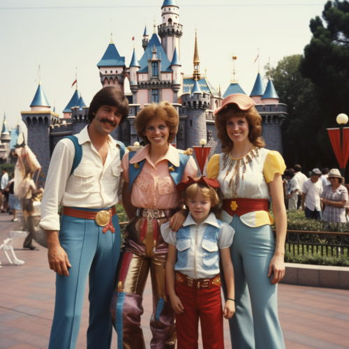 color drawing of one room of the Disneyland It's a Small World Ride, showing the waterway, scenery and puppets, retro, 1970s --ar 3:2