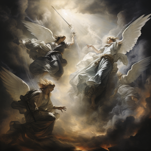 A battalion of warrior angels, muscular and beautiful angels in dynamic poses, armour, skin showing, swords, light shining, cinematic, fantasy concept art --ar 4:5
