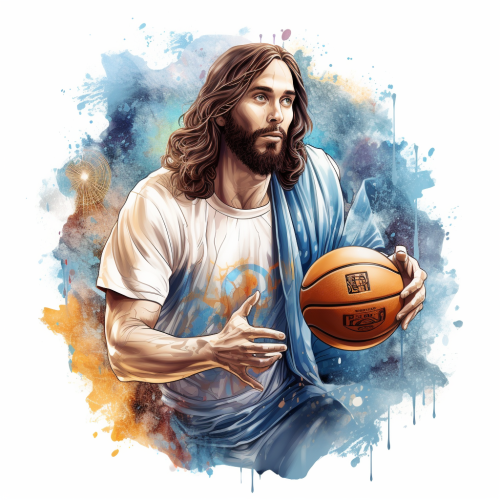 Jesus christ as a full color NBA sports logo, Vector art, Tattoo art. Exciting. Dynamic. Extra detailed. Hyperrealistic.