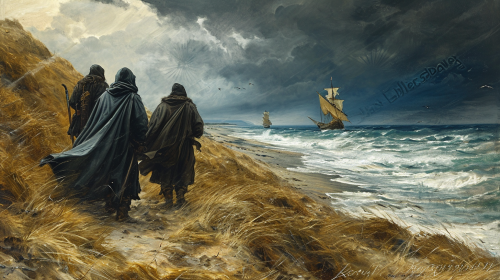 A peaceful, photorealistic visual of Jesus walking along a quiet shoreline at sunrise, with the soft glow of the early morning light reflecting off the water. His robes flow gently in the breeze, and His expression is one of deep serenity and connection with the world around Him. The scene should feel calm and meditative, evoking a sense of inner peace and spiritual reflection. Art Style: Photorealism, Soft Lighting, Tranquil