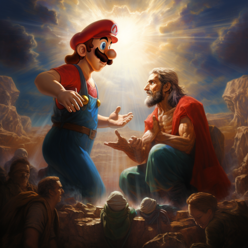 Scene 6: Return and Gratitude Upon returning to the Mushroom Kingdom, Mario and Luigi expressed their deep gratitude to Jesus for his guidance and help during their journey.