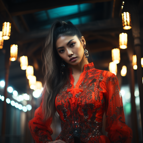 beautiful asian girl,she is a Jiang shi vampire,white skin,red lips,Cinematic scene Cyberpunk futurism universe Slow - motion effect, masterpiece, photographic realism, hyper realistic, high quality, winning photography, candid photo, dreamlike lighting, magic photography, stellar formations, polka dot and herringbone patterns, colored backlights, dark future, neon colors, night, tattooed bodie, Japanese minimalism, inspired by Roger Deakins with Roger Deakins and Linus Sandgreno, shot with Kodak Portra 400 35mm or 55mm, 32K, I can't belive how beautiful this is, maximum details --stylize 750 --weird 60 --chaos 50 --style raw