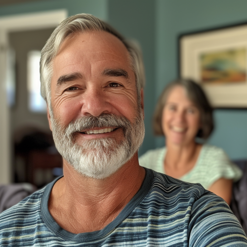 happy, accomplished man who's smile is infectious, 55 years old --v 6.0
