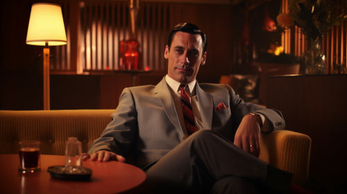 cinematic still from Mad Men TV show --seed 4000 --ar 16:9 --v 5.2 --style raw