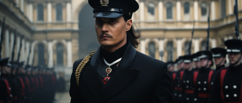 Johnny Walker walks from left to right, a wide step, boots on his feet, a hat on his head, a cane in one hand, holding a hat with the other hand, realistic photo --style raw