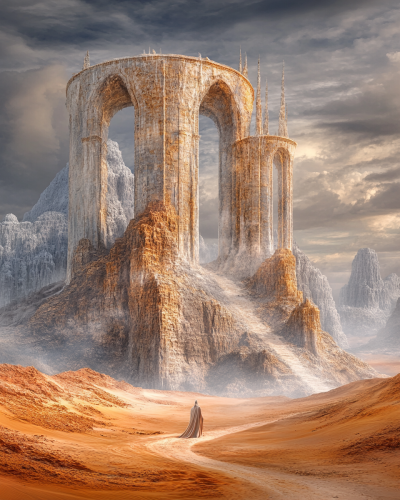 Moebius style, hypermaximalist, baroque, HDR Unreal Engine, the ancient towers of the Desert on Haumea in the morning. Scary statues climb along the walls --s 1000 --ar 4:5 --v 6.1 --personalize 1uq5ouh