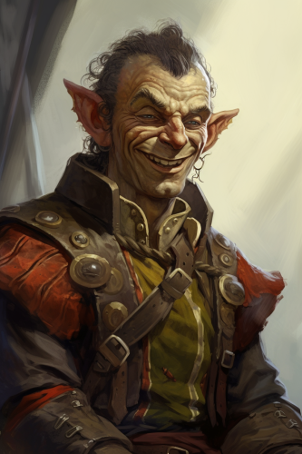 dnd handsome hobgoblin male profile, jolly expression, --ar 2:3