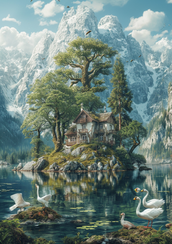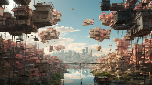 A symbiotic Elysian image with Floating world, a Animals style, and a Surreal view --v 6.0 --c 15 --ar 25:35 --s 750