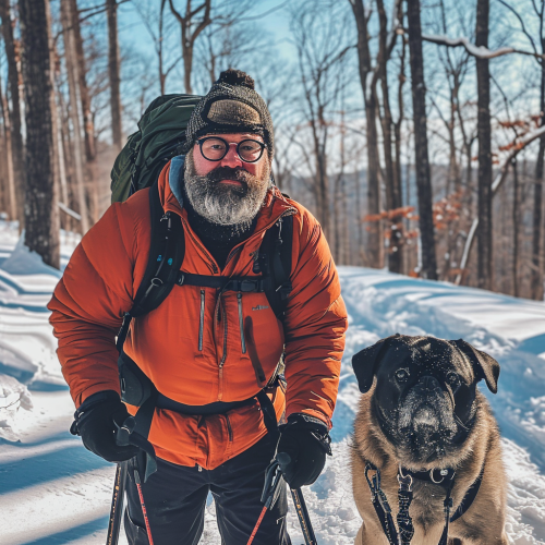 our fat friend Ted on a double diamond ski mountain path training a amateur. Georgia mountains. --v 6.0