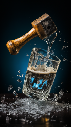 comic book art of a hammer shaped like a fist made of amethyst, smashing though purple glass with shards flying everywhere, profile picture, line drawing with shading and vibrant colors