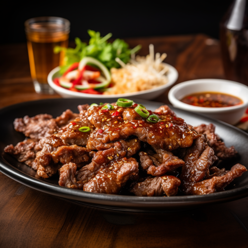 Juicy grilled chicken slices paired with roasted zucchini and bell peppers, lightly drizzled with olive oil and garnished with fresh herbs, arranged on a sleek, modern plate.