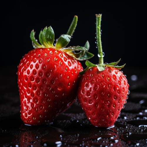 a photo with two sides, one showing a dry strawberry and the other showing a wet strawberry