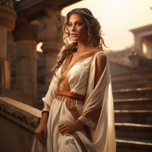 overview of incredible and epic shot of an egyptian entourage with cleopatra in her 30's and her roman son caesarion visiting julius caesar in rome, show a large entourage of egyptians at a first century bc roman villa of high status, be creative and show intricate details, Nikon D850, Fujifilm Velvia 50 color film, Nikkor 24-70mm lens, low-angle shot, wide aperture to capture the breadth of the scene, slow shutter speed to blur motion and add intensity, Stanley Kubrick, Christopher Nolan, Annie Leibovitz, Vivienne Westwood --ar 16:9 --v 6.0