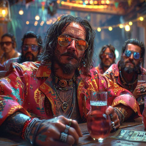 a Goons Club Character making party with other Goons in a Bar with Disco lights, Photorealistic 3D Style--ar 5:3 --v 6.0 --s 750