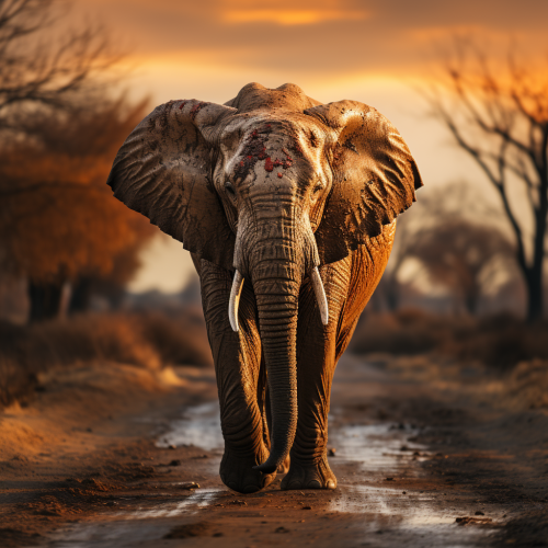cinematic photo of african bull elephant at dusk standing in middle of road --s 750