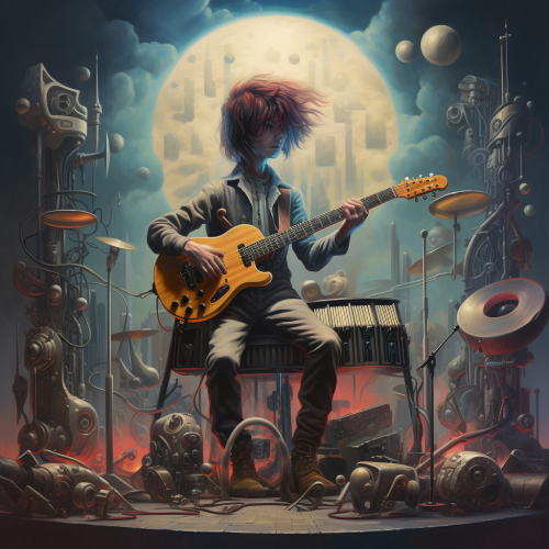 comic style drawing of a bedroom and black musician playing a guitar, front view, musician looking straight to the camera front --ar 16:9