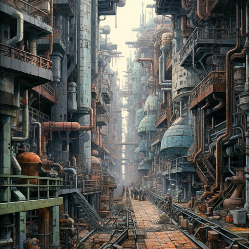 An abstract interpretation of a massive transformer in the heart of an urban landscape, with energy ripples expanding in all directions like delicate threads. The simplicity of the scene captures the idea of silent power, with emphasis on light and shadow contrast --ar 4:3 --v 6.1