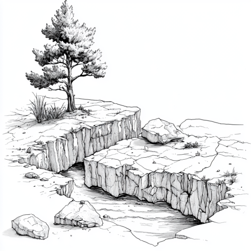 Photorealistic, cinematic view of a majestic, old tree, uneven yet balanced, leaning over a straight, naturally worn path on a gentle hill in a vast natural landscape. The tree is almost centered in the frame, with branches extending toward the path. The sun is high in the sky, casting strong rays through dense clouds, shaping visible light beams. The atmosphere is dry and serene, with a realistic, photorealistic feel. --ar 16:9