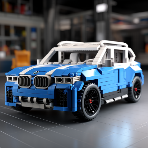 The LEGO box for the Cream white BMW M3 E30 car, placed next to it is also a LEGO set of all parts and components in front of them. The packaging features realistic photography style, high resolution, and the Lego product has a dark background with light shining on its surface.high quality --ar 9:16