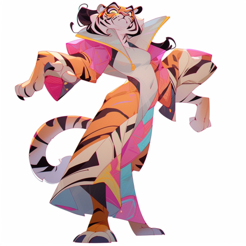 Art Deco Cartoon illustration of male furry skinny small chested tiger superhero fursona, wearing ninja outfit --ar 2:3 --style expressive --niji 5 --no Muscular