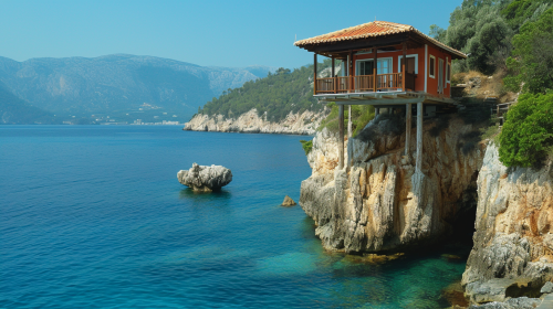 frank lloyd wright falling water house, antiquing, vintage art, line art, Greece, one line outline, --ar 2:3 --v 5.2