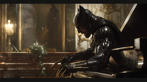 4k chibi full body,kawaii,HD photto.black and white ,a woman with a bob cut in a kimono playing the piano digital apace expression is cold rose,horror --s 750 --style raw