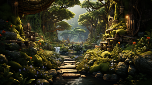 cinematic scene of an African a lush forest scene. This visual representation captures the essence of African mythology. This is an ultra-realistic photograph captured on high-resolution 35mm film. --ar 16:9