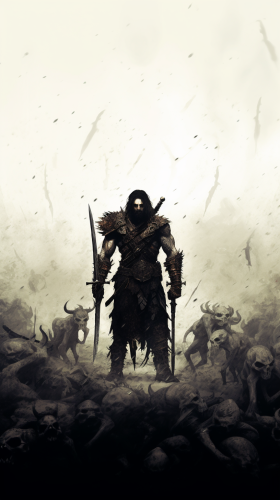 dark fantasy hero, action shot, fighting, full body image, graphic, brutal, intense, 4k, vivid, 4k ultra detailed, 4k cinematic, 4k hyper detailed, 4k ultra realistic, 4k hyper realistic, 4k photorealistic, --ar 16:9 --v 6.1