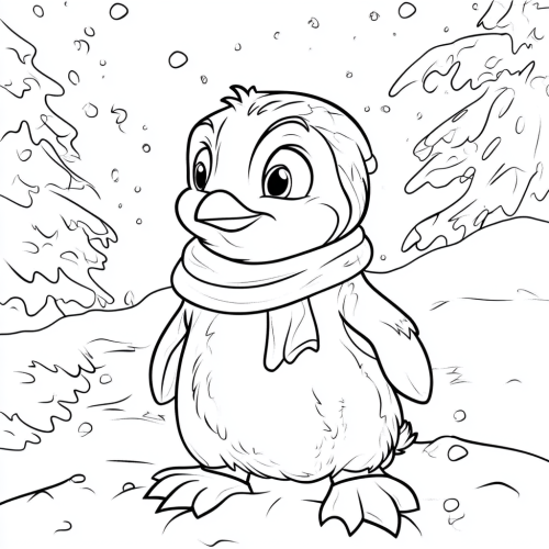 coloring page for kids,a cute penguin ,cartoon style, thick lines, low detail,no shading ,Dreamlike, Art style in the manner of a disney film , bright image.