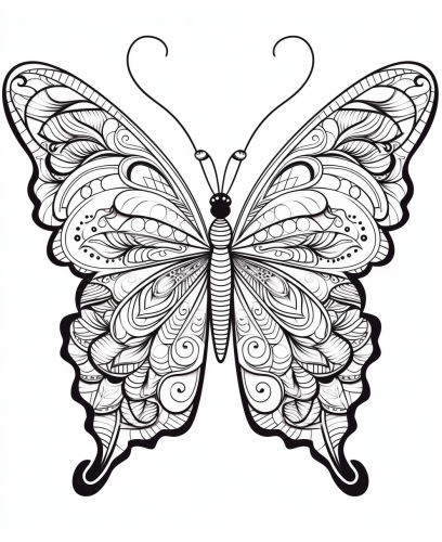 coloring page for kids, butterfly, cartoon style, thick line, low detailm no shading --ar 9:11