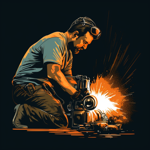 a mechanic using a blowtorch in the style of vector illustration, stencil art