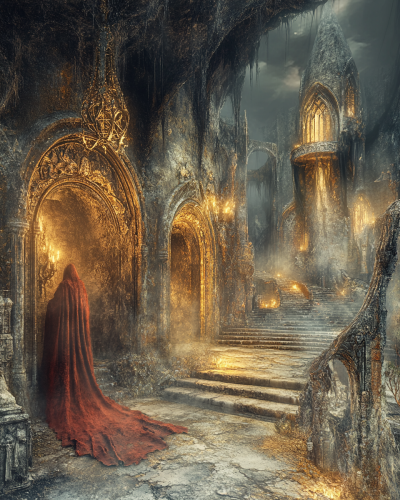 Sandman by Neil Gaiman, Jack Kirby style, hypermaximalist, baroque, HDR Unreal engine, scary statues climb along the walls --s 1000 --ar 4:5 --personalize 1uq5ouh