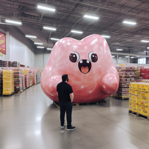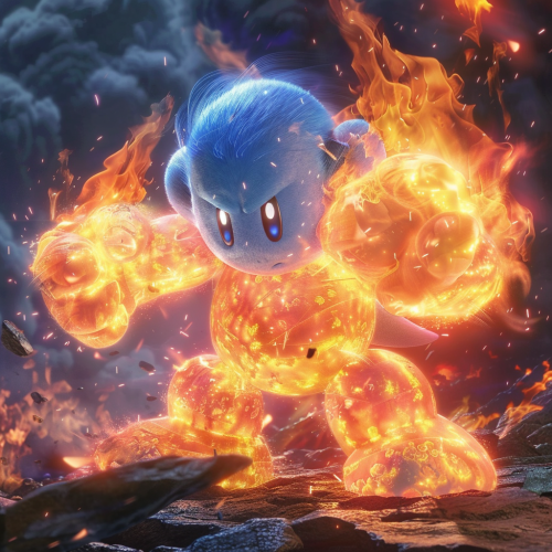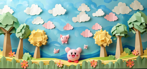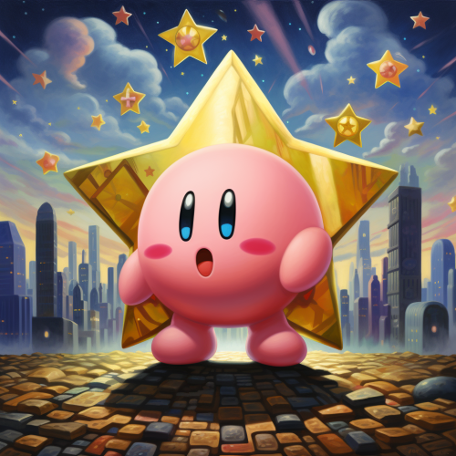 Cartoon Kirby eating lots of food