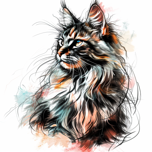 A cute mainecoon cat,haphazard line scribble,ephemeral clean outline art,clip art,hd,on white background --v 6.0