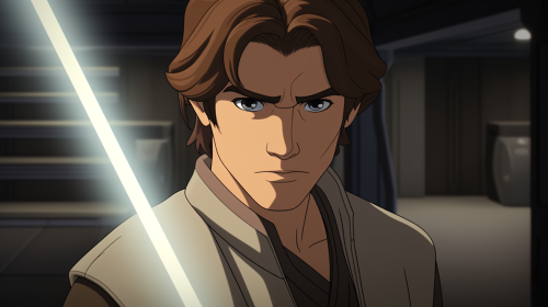 28 year old adult jedi-knight in training to become jedi-master, classic star wars animation style --ar 16:9