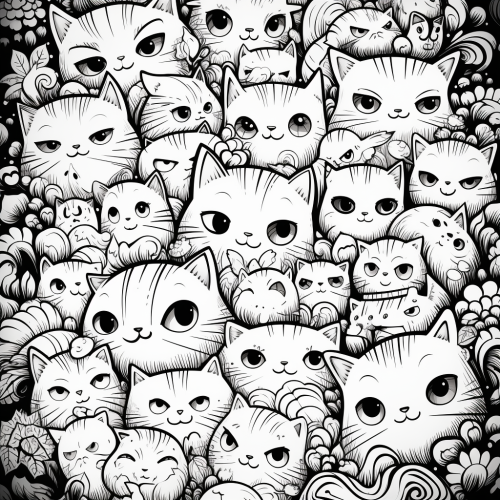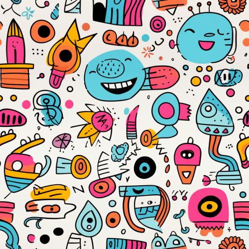 overlapping cartoon doodles, doodle art, doodle coloring book --v 4