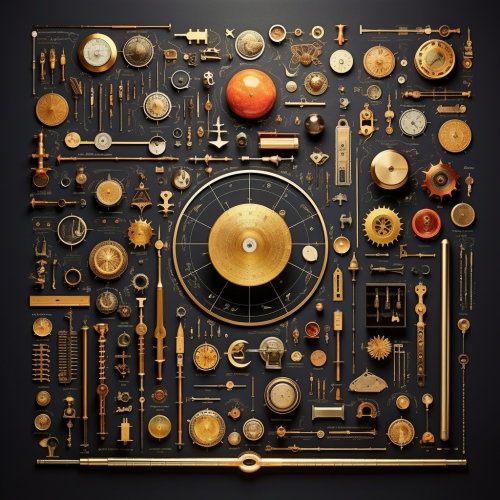 knolling doodles, vector art, stark black and white, stick figure, simple, clean and sharp inking/ --ar 17:22