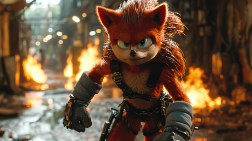 Film character Knuckles hurtling through Space like a comet, --ar 16:9 --v 6.0 --style raw --s 750