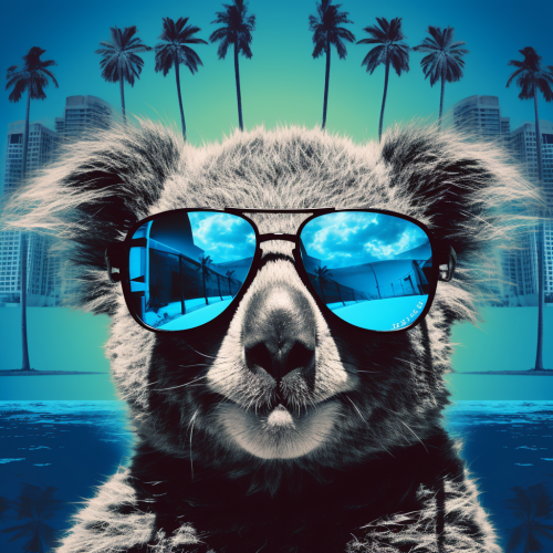 Koala, sunglass city photo collage, blue background, block noise art