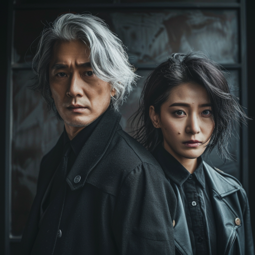 Create an image of two young Korean men engaged in a casual podcast or interview setting. They are seated across from each other at a minimalist wooden table, each with a microphone in front of them. One man is dressed in a casual denim jacket, holding a cup of iced coffee and smiling, while the other is in a black suit, holding a paper or notes. The background should be simple, with soft lighting and a neutral-colored curtain behind them. Include some subtle elements like a small plant on one side and a modern lamp to enhance the cozy, professional atmosphere. The overall vibe should be relaxed and friendly, focusing on their interaction and the podcast environment, super realistic, UHD, future, Cinematic, Photography, Ultra - Wide Angle, Depth of Field, hyper - detailed, insane details, intricate details, beautifully color graded, Unreal Engine 5, Cinematic, Photoshoot, Shot on 25mm lens, Depth of Field, DOF, Tilt Blur, Shutter Speed 1/ 1000, F/ 22, White Balance, 32k, Super - Resolution, Megapixel, Pro Photo RGB, VR, Good, Massive, Half rear Lighting, Backlight, Natural Lighting, Incandescent, Optical Fiber, Moody Lighting, Cinematic Lighting, Studio Lighting, Soft Lighting, Volumetric, Conte - Jour, Beautiful Lighting, Accent Lighting, Global Illumination, Screen Space Global Illumination, Ray Tracing Global Illumination, Optics, Scattering, Glowing, Shadows, Rough, Shimmering, Ray Tracing Reflections, Lumen Reflections, Screen Space Reflections, Diffraction Grading, Chromatic Aberration, GB Displacement, Scan Lines, Ray Traced, Ray Tracing Ambient Occlusion, Anti - Aliasing, FKAA, TXAA, RTX, SSAO, Shaders, OpenGL - Shaders, GLSL - Shaders, Post Processing, Post - Production, Cell Shading, Tone Mapping, CGI, VFX, SFX, insanely detailed and intricate, hyper [...]