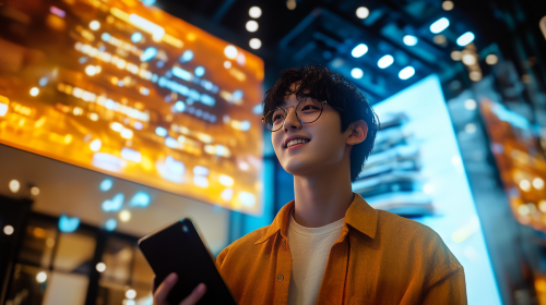 Korean Man Watching Live Golf Voucher Broadcast On Smartphone