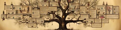 a fantastic family tree with empty name slots, old paper --ar 4:1
