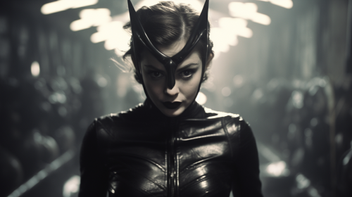 Film still of Catwoman running through Gotham City. Directed by stanley kubrick --ar 16:9