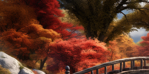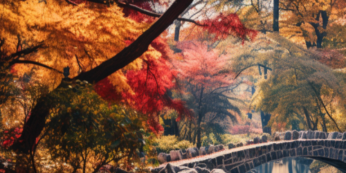 japanese arch bridge bridge-in-autumn-forest-stream-pretty-colorful-autumn-riverbank-beautiful-bushes-nice-calm-bridge-river-forest-lovely-japanese-trees-peaceful-nature-branches. Ultra-Wide Angle, Depth of Field. Octane render, Intricate details. --ar 64:32 --upbeta --v 5.2